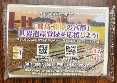 「飛鳥・藤原の宮都」の世界遺産登録に向けた機運を地域から支えるため、商工会議所、商工会、観光協会等による民間主体の応援する会を設立しました。